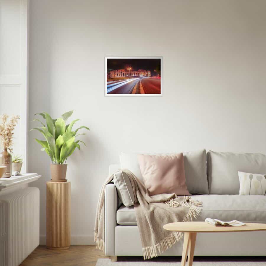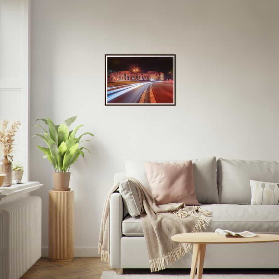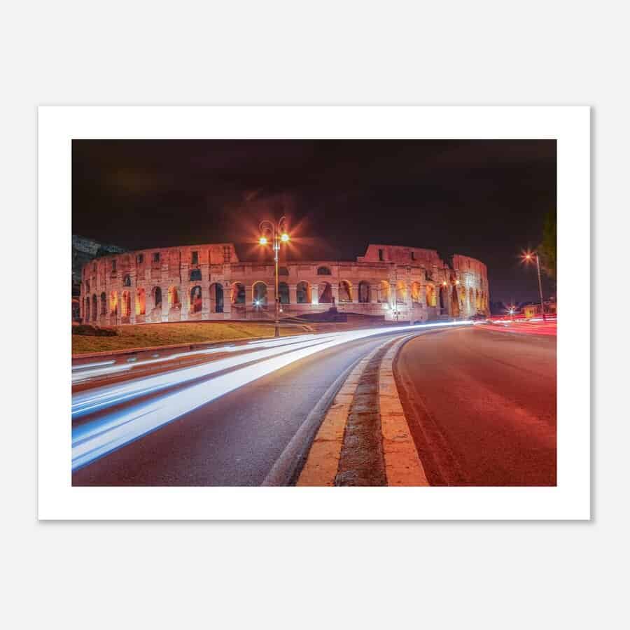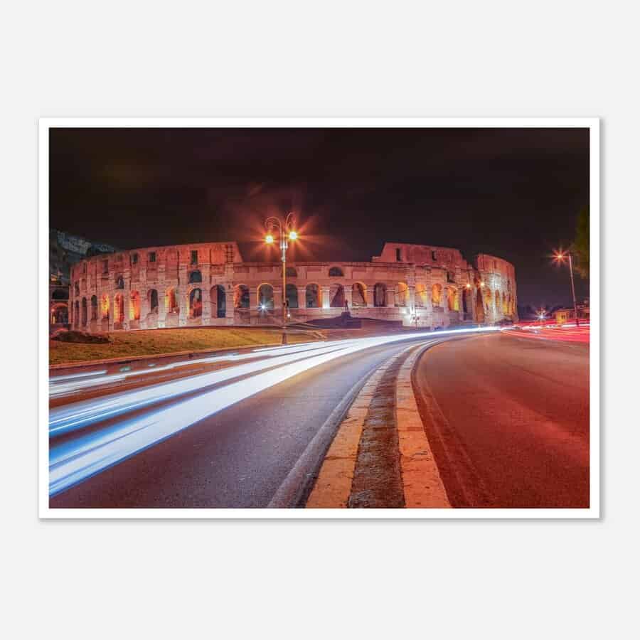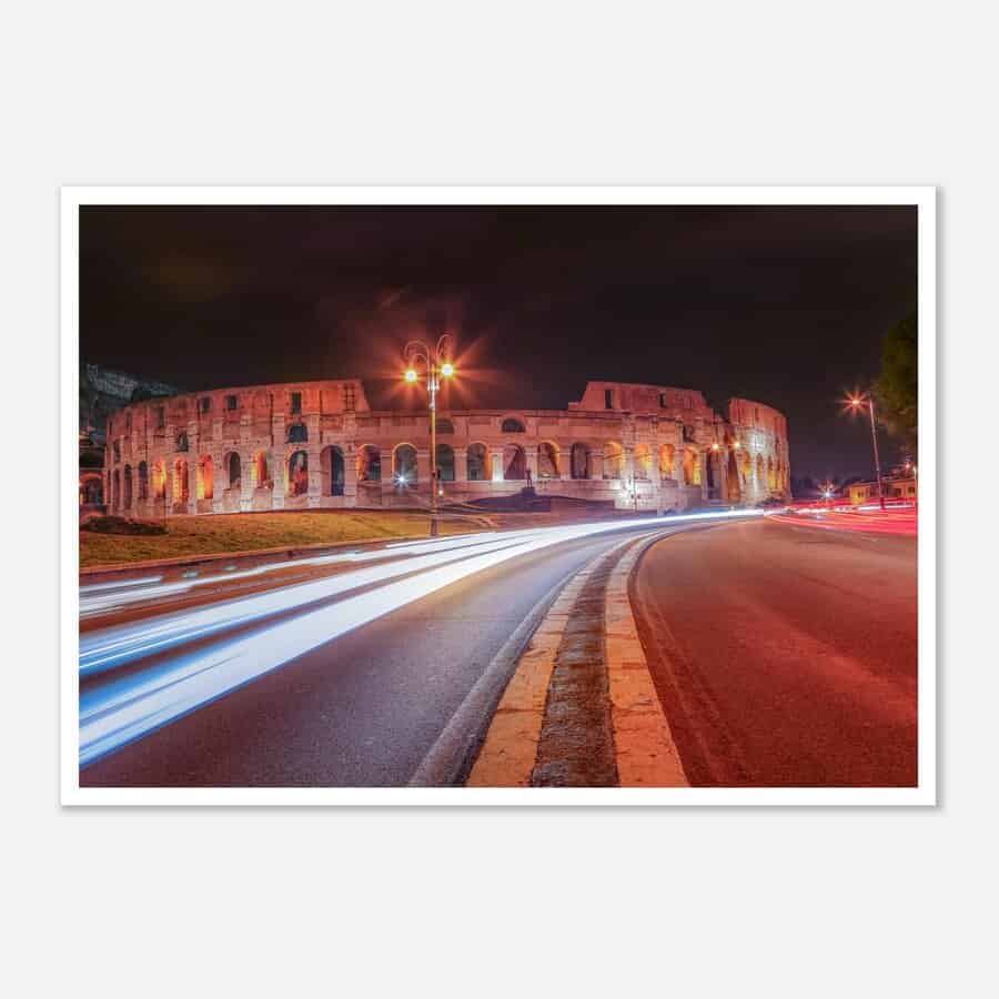 Dieser Fine Art Druck mit dem Kolloseum von Rom bei Nacht fängt die pulsierende Essenz von Rom ein. Mit dem berühmten Kolloseum ist dieses Stück ein Muss für jeden Reisekunst-Enthusiasten und Liebhaber der wunderschönen Stadt von Rom.