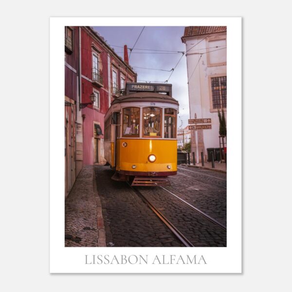 Entdecke die zeitlose Schönheit von Lissabon mit unserem beeindruckenden Poster ‚DIE GELBE TRAM 28 LINIE IM ALFAMA VIERTEL IN LISSABON. Dieses wunderschöne Kunstwerk in einem der charmantesten Viertel Lissabons bringt das besondere Flair dieser Stadt direkt zu dir Zuhause.